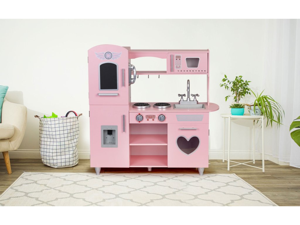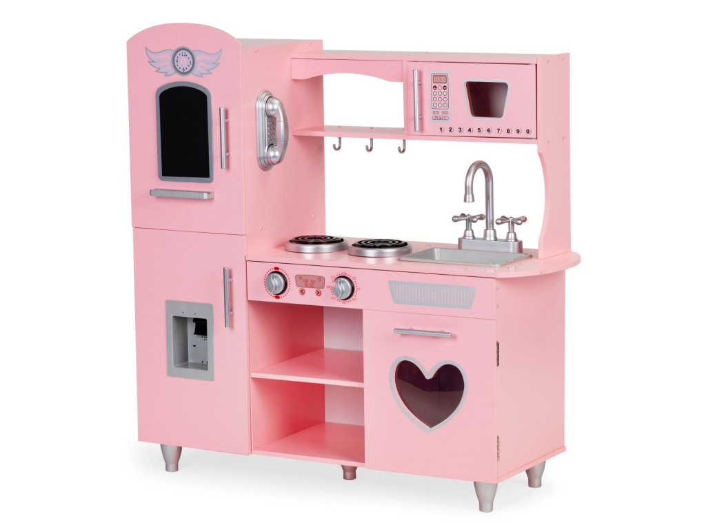Velká dřevěná dětská kuchyňka se zvukovými efekty – růžová