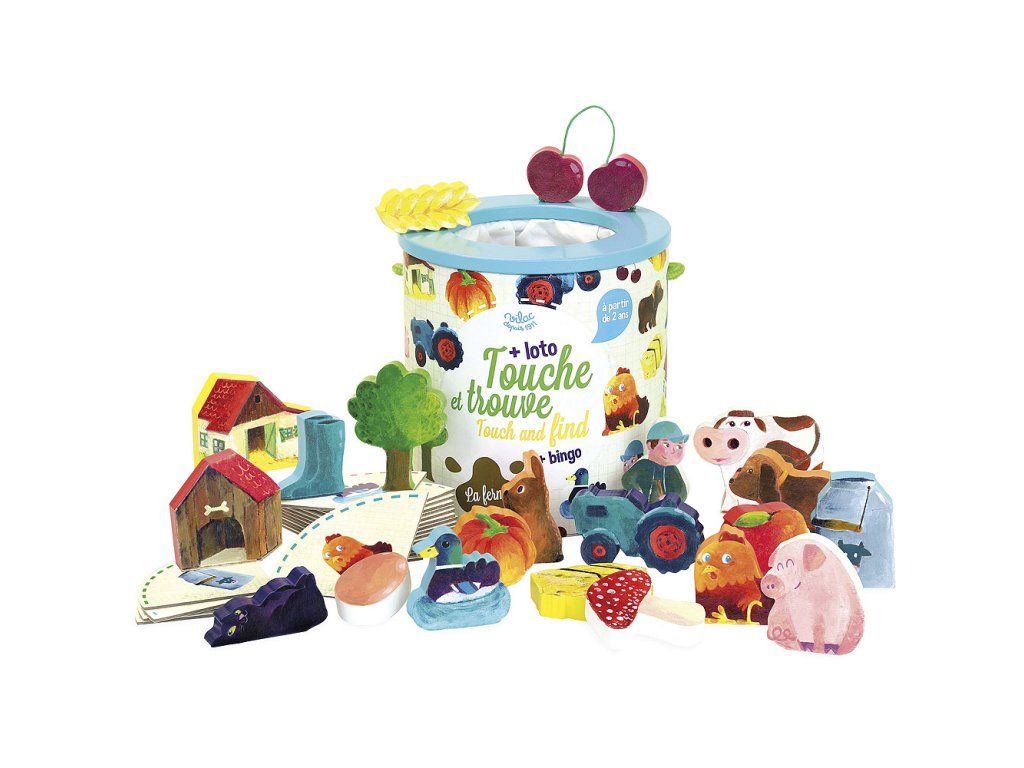 Nepřekonaný bestseller Vilac se originálním způsobem snaží rozvíjet často opomíjený smysl dětí, hmat. Hra je tvořená zejména dřevěnými figurkami ukrytými v kyblíku vybaveném uvnitř jemným látkovým sáčkem. Menší děti mají za úkol po vložení ruky do tuby jen na základě hmatání popsat svými slovy, jaký předmět drží v ruce. Rodiče mohou postup dětem předvést názorným příkladem. Starší děti mohou hrát hru ve formě lota, nebo binga, k těmto hrám jsou v sadě k dispozici obrázkové karty jednotlivých předmětů. Hlavní vlastnosti: 21 herních dílků a 20 obrázkových karetpro 2–5 hráčůrůzné herní variantypraktické balení Návod ke hře: Hmatej a najdi:První hráč si vezme kartu z hromádky. Poté musí sáhnout do sáčku a podle hmatu najít dřevěný dílek, který odpovídá obrázku na kartě. Pokud vybere správný dílek, kartu si ponechá a na řadě je další hráč, který opět začíná tažením karty z hromádky. Pokud ale první hráč vybere nesprávný dílek, musí svou kartu předat dalšímu hráči, který se musí pokusit najít správný dílek. Po každém kole se dílky vrací zpět do sáčku. Když už na hromádce nezbývá žádná karta, určí se vítěz. Vítězí hráč s největším počtem karet. Pozor! Pokud jeden z hráčů náhodou vytáhne dílek ve tvaru muchomůrky, musí všechny své karty vrátit na hromádku! Pravidla můžete upravit dle vlastního uvážení, aby se děti lépe seznámily s hmatáním a hledáním předmětů: 1 – Začněte s malým množstvím dřevěných dílků.2 – Dovolte dětem podívat se do sáčku.3 – Poté hru opět udělejte o něco těžší, nedovolte jim nahlížet do sáčku.4 – Přidejte do sáčku více dílků.5 – Nakonec, až si děti na hru zvyknou, hrajte podle tradičních pravidel. BINGO varianta:Rozložte 4 karty do čtverce a vytvořte jedno, nebo více hracích polí pro každého hráče. Jeden z hráčů, nebo rodič vytáhne dílek ze sáčku a vyvolá ho. Hráč, který má kartu odpovídající tomuto vyvolanému dílku, si jej vezme a položí na svou kartičku. Vítězí hráč, který jako první zaplní své herní pole! Dokumentace: Návod ke hře Hmatej a najdi farma (CZ)Návod ke hře Hmatej a najdi farma (SK)Doplňkové parametry