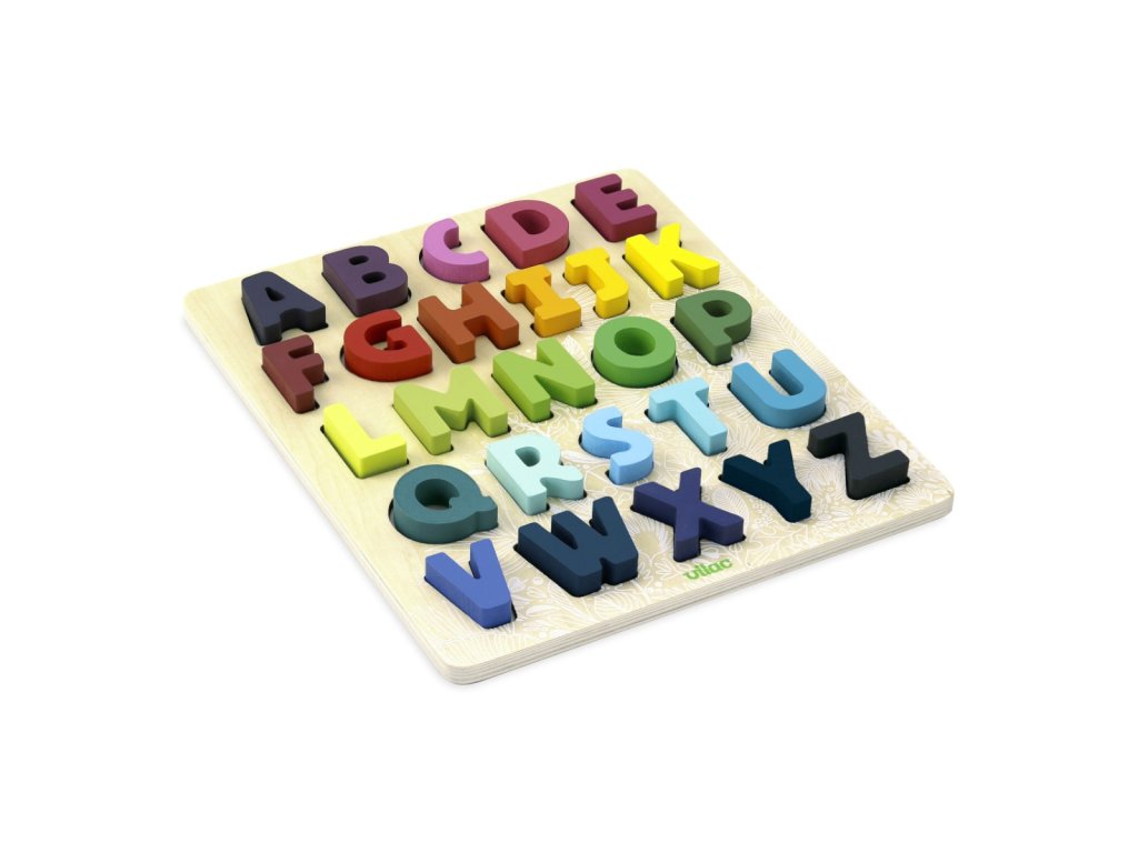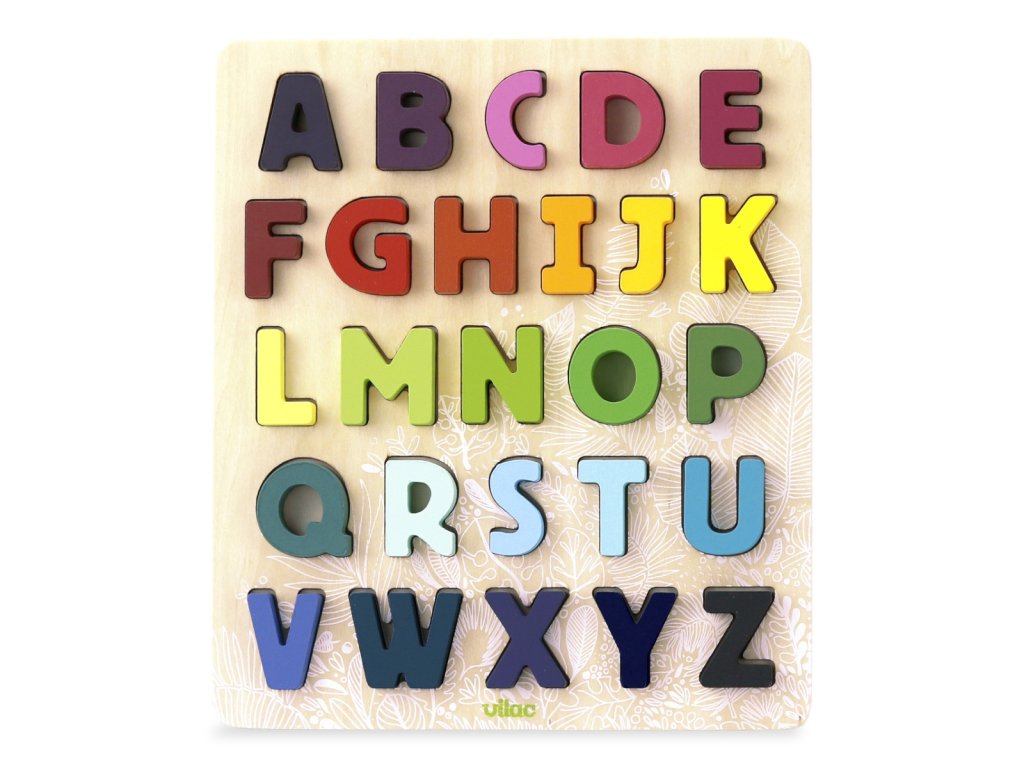 Seznamte se s abecedou pomocí barev duhy. Procvičujte s ní paměť i koordinaci rukou a zraku. Vkládejte písmena do desky, nebo skládejte slova. Tato dřevěná vkládačka je vhodná i jako dekorace v dětském pokoji. Baleno v praktickém látkovém vaku. Hlavní vlastnosti: 1 základna, 26 dílkůpraktické balenívyrobeno ekologicky, šetrně k životnímu prostředíDoplňkové parametry
