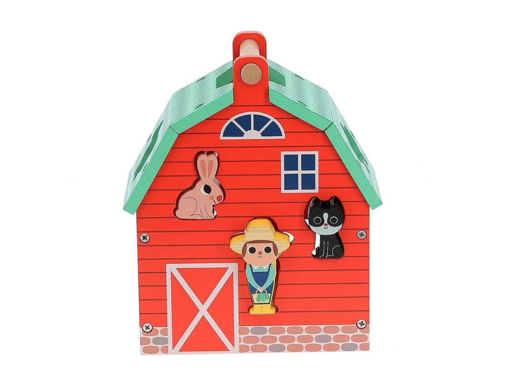 Děti si užijí spoustu zábavy s touto hrou plnou zvířátek, která se bude skvěle vyjímat i v jejich pokoji. Vlastním tempem se naučí, jak manipulovat se zvířátky, aby se vešla do příslušných otvorů. Jakmile jsou dílky na místě, lze je snadno vyndat díky dvířkům. Děti si budou také rády hrát s figurkami zvířátek , zkoumat jejich tvary a používat přitom farmu jako oporu pro svou fantazii. S dřevěnou farmou budou děti také využívat celou řadu dovedností jako jsou soustředění, zručnost, motoriku, trpělivost a koordinaci pohybů. Při zábavě se naučí poznávat tvary, barvy a zvířata. Dřevěnou hračku pro rané učení ocení malí dobrodruzi, budou ji využívat po mnoho let, díky použitým materiálům - kvalitního dřeva, které je vysoce odolné proti nárazu, a použitá barva, která je pro děti bezpečná. Závěs dveří je vyroben z pružného materiálu, který chrání dětské prsty. Hlavní vlastnosti: rozvíjí soustředění, zručnost, motoriku, trpělivost a koordinaci pohybůoblíbený dárek pro dětioriginální design Ingela P. Arrheniuspro děti od 2 let vyrobeno ekologicky, šetrně k životnímu prostředí Švédská umělkyně Ingela Peterson Arrhenius se narodila v roce 1967. Umění a design měly vždy místo v jejím životě a než začala její kariéra ilustrátorky, Ingela pracovala jako umělecká vedoucí ve Stockholmu. Poté studovala reklamní a grafický design na umělecké škole také ve Stockholmu. V roce 1992 začala podnikat jako ilustrátorka na volné noze a pracovala mezinárodně napříč reklamou, designem, nakladatelstvím… V minulosti vytvářela tiskové vzory pro tkaniny, tapety, papírnictví, také pracovala na obalech, produktovém designu, bytových doplňcích a hračkách. Její plakáty a designové hračky najdete po celém světě. Má vášeň pro retro styl, což je jasně vidět na jejich dílech a také v jejím nadšení pro typografii a barvy. Nyní žije ve Stockholmu s manželem a 2 syny.Doplňkové parametry