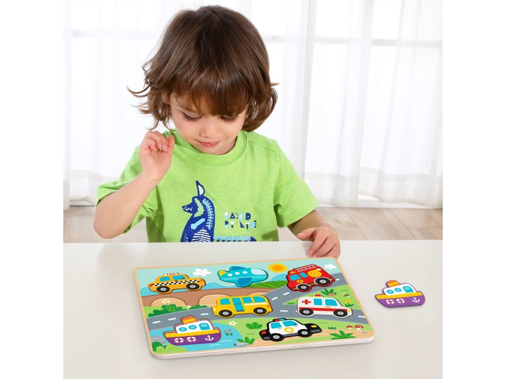 Jaký to krásný pohodový den. Sluníčko svítí a všechny dopravní prostředky jsou již na cestách. Toto vkládací puzzle přináší skvělou možnost, jak u našich nejmenších trénovat jemnou motoriku, trpělivost a poznávání dopravních prostředků. Skládá se ze základny a 7 odnímatelných dílků. Hračka je vyrobena z kvalitního FSC dřeva. Má krásné ilustrace, díky kterým může také posloužit jako milá dekorace v dětském pokojíčku. Hlavní vlastnosti: obsahuje 7 vkládacích dílůrozvíjí smyslové dovednosti procvičuje jemnou motoriku a trpělivostpestrobarevná ilustrace Značka a certifikát FSC® (Forest Stewardship Council) zaručuje, že dřevo, ze kterého byl produkt vyroben, nebylo vytěženo nelegálně a pochází z lesů obhospodařovaných šetrným či přírodě blízkým způsobem, ve kterém jsou dodržovány přísné environmentální a sociální požadavky. Značka FSC® na výrobku znamená, že svým nákupem pomáháte chránit lesy a podporujete šetrné, odpovědné či přírodě blízké hospodaření, díky kterému jsou naše lesy stabilnější, zdravější, mají přirozenou druhovou skladbu a lépe odolávají negativním následkům klimatických změn.Doplňkové parametry