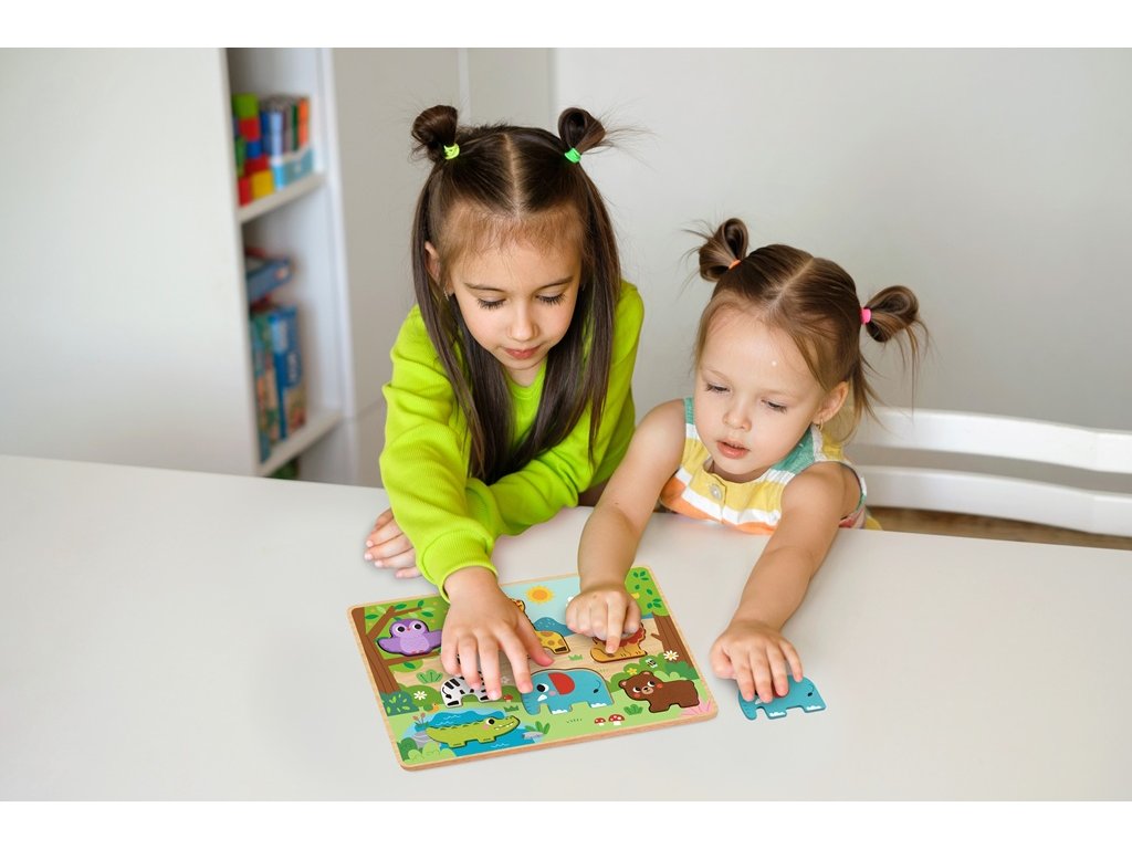 Jaký to krásný pohodový den. Sluníčko svítí a většina zvířátek vyšla ze svých domovů. Toto vkládací puzzle přináší skvělou možnost, jak u našich nejmenších trénovat jemnou motoriku, trpělivost a poznávání zvířátek. Skládá se ze základny a 7 odnímatelných dílků. Hračka je vyrobena z kvalitního FSC dřeva. Má krásné ilustrace, díky kterým může také posloužit jako milá dekorace v dětském pokojíčku. Hlavní vlastnosti: obsahuje 7 vkládacích dílůrozvíjí smyslové dovednosti procvičuje jemnou motoriku a trpělivostpestrobarevná ilustrace Značka a certifikát FSC® (Forest Stewardship Council) zaručuje, že dřevo, ze kterého byl produkt vyroben, nebylo vytěženo nelegálně a pochází z lesů obhospodařovaných šetrným či přírodě blízkým způsobem, ve kterém jsou dodržovány přísné environmentální a sociální požadavky. Značka FSC® na výrobku znamená, že svým nákupem pomáháte chránit lesy a podporujete šetrné, odpovědné či přírodě blízké hospodaření, díky kterému jsou naše lesy stabilnější, zdravější, mají přirozenou druhovou skladbu a lépe odolávají negativním následkům klimatických změn.Doplňkové parametry