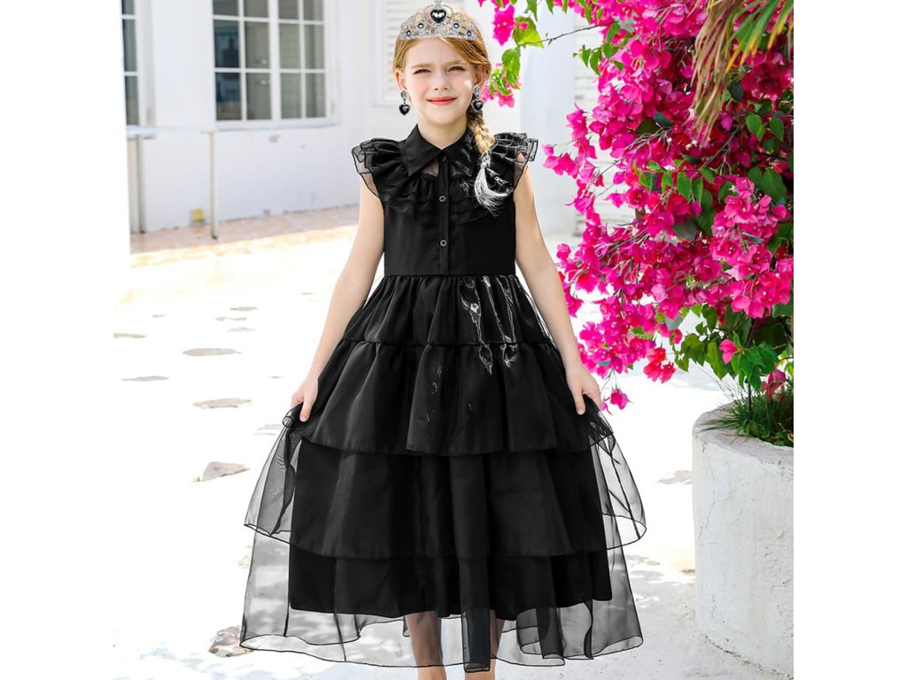 Tato sada je ideální na karneval, Halloween, tematické focení nebo jen jako originální doplněk k běžnému outfitu. Udělejte radost malým milovnicím temného stylu a dopřejte jim pocit, že jsou součástí tajemného světa Wednesday Addams.