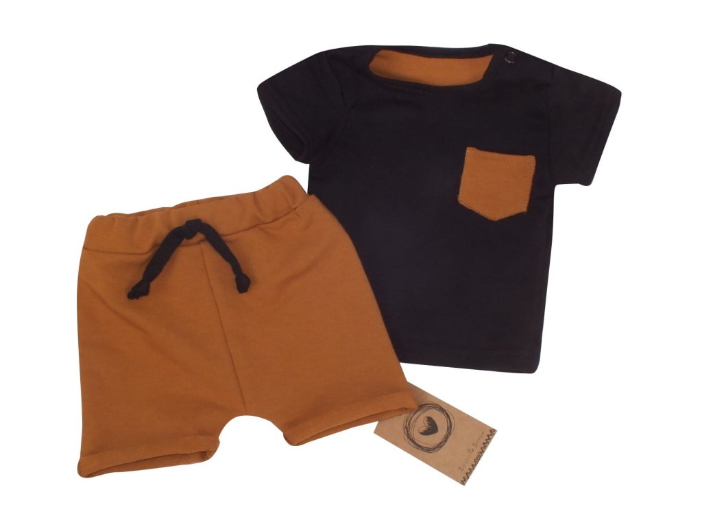 Z&Z 2-dílná sada tričko kr. rukáv, kraťásky s provázkem - hnědá, černá