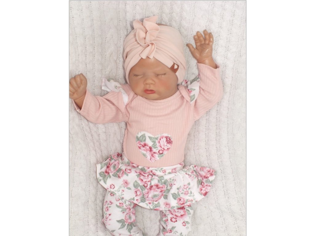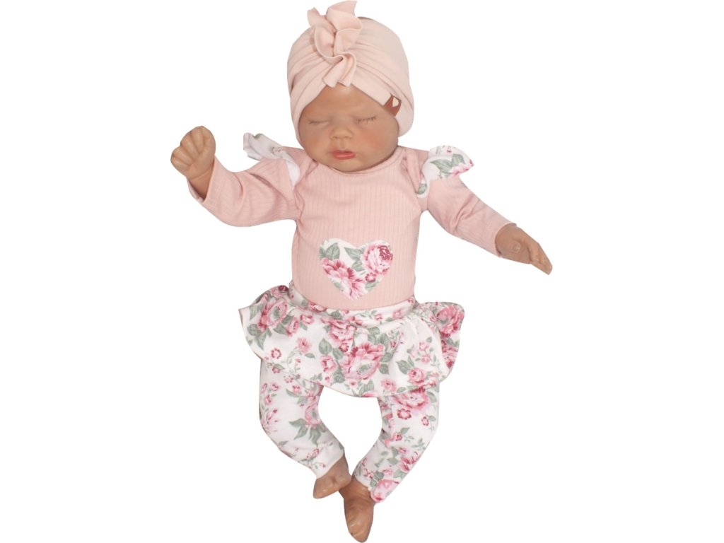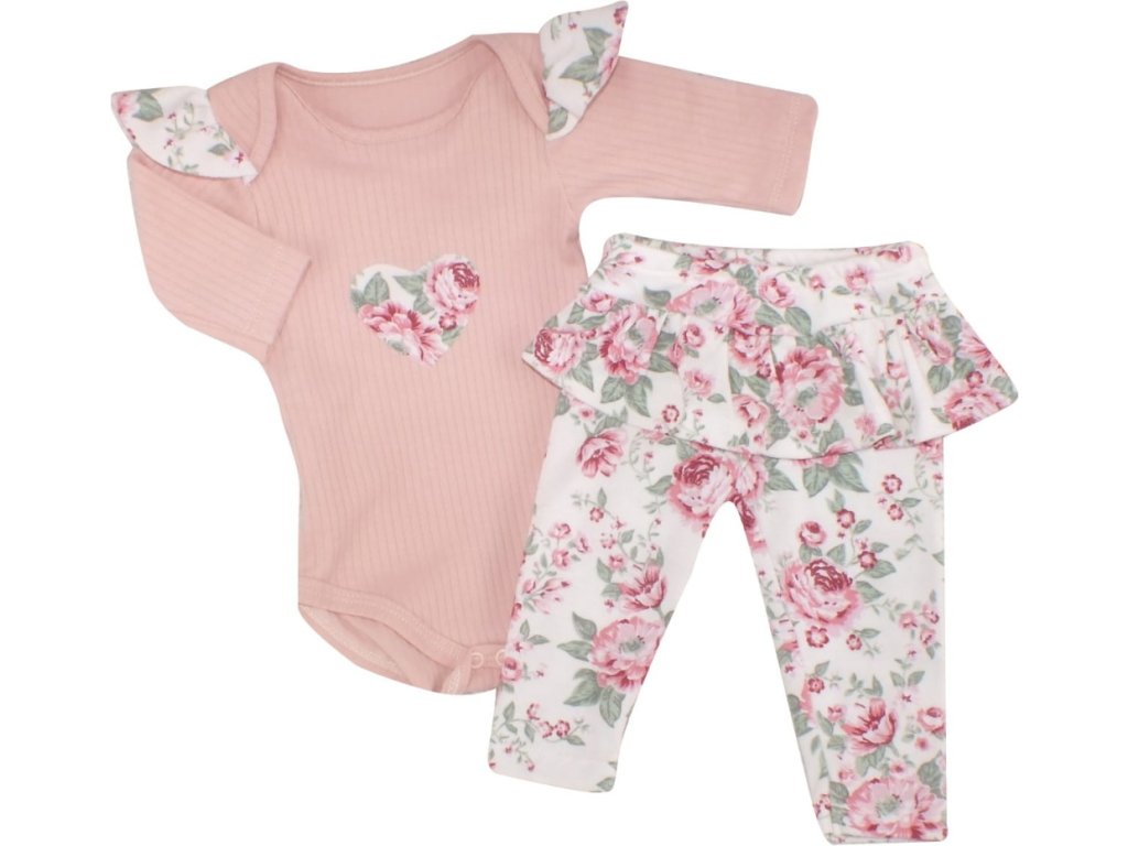 Z&Z 2-dílná soupravička body a legíny se sukničkou Květy - pudrová/ecru