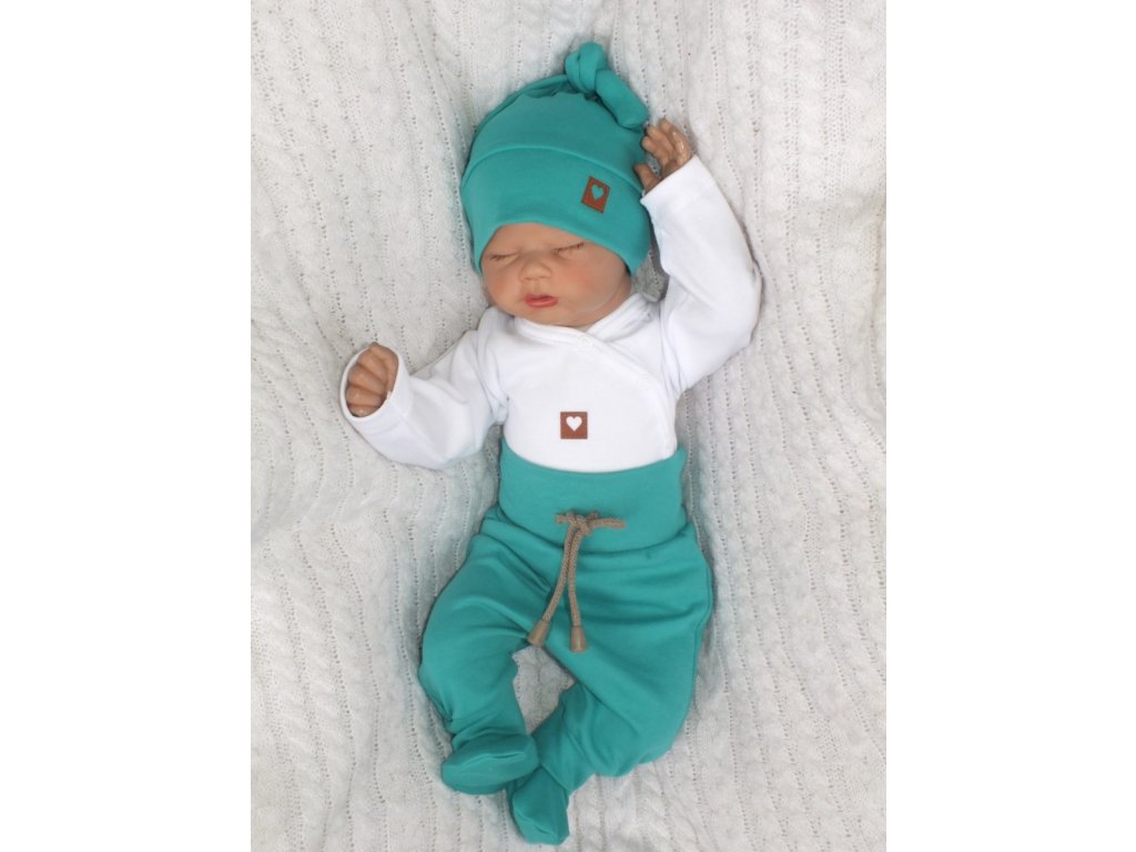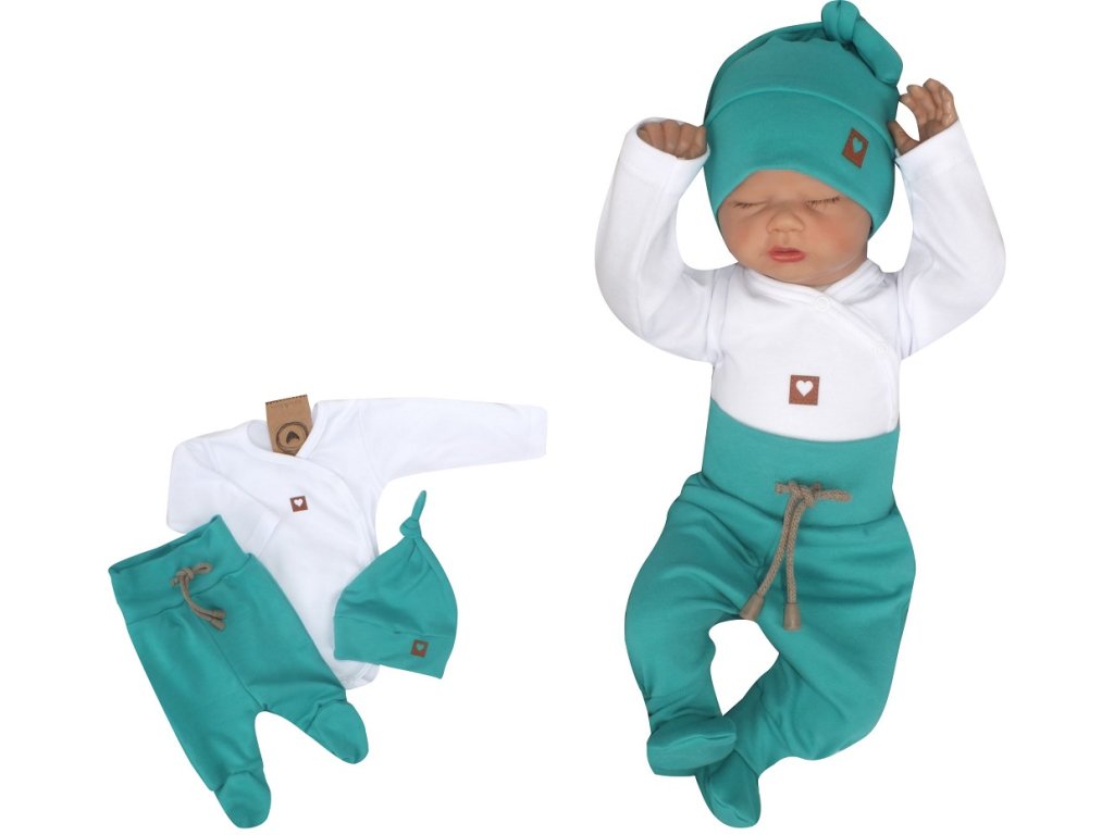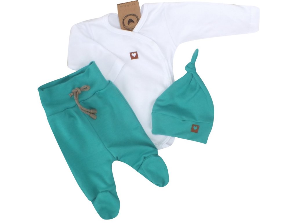 Z&Z 3-dílná soupravička body, polodupačky s provázkem a čepička - zelená, bílá