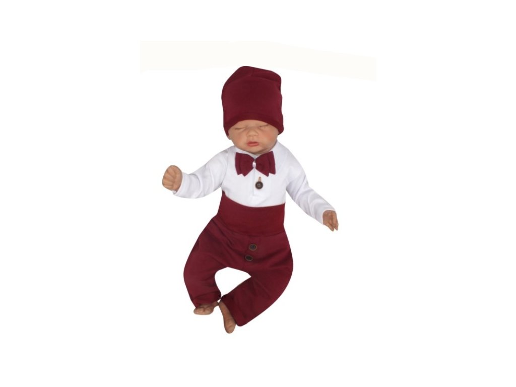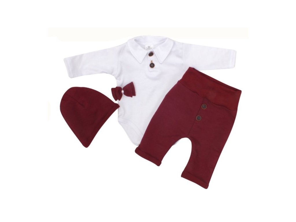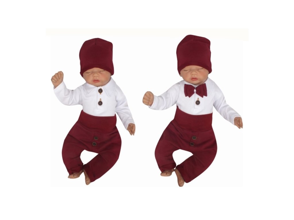 Z&Z 4-dílná soupravička body, tepláčky, čepička a motýlek, bílá/bordó