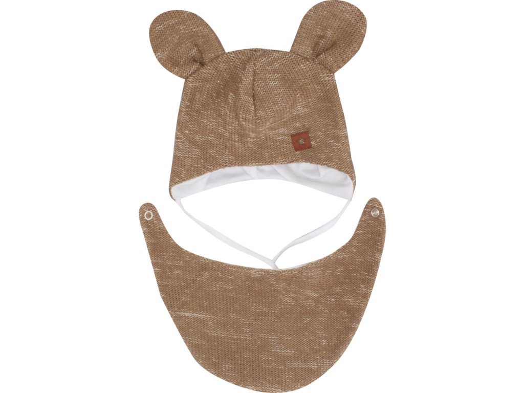Z&Z Dvouvrstvá pletená čepice na zavazování s šátkem 2v1, Méďa - hnědá