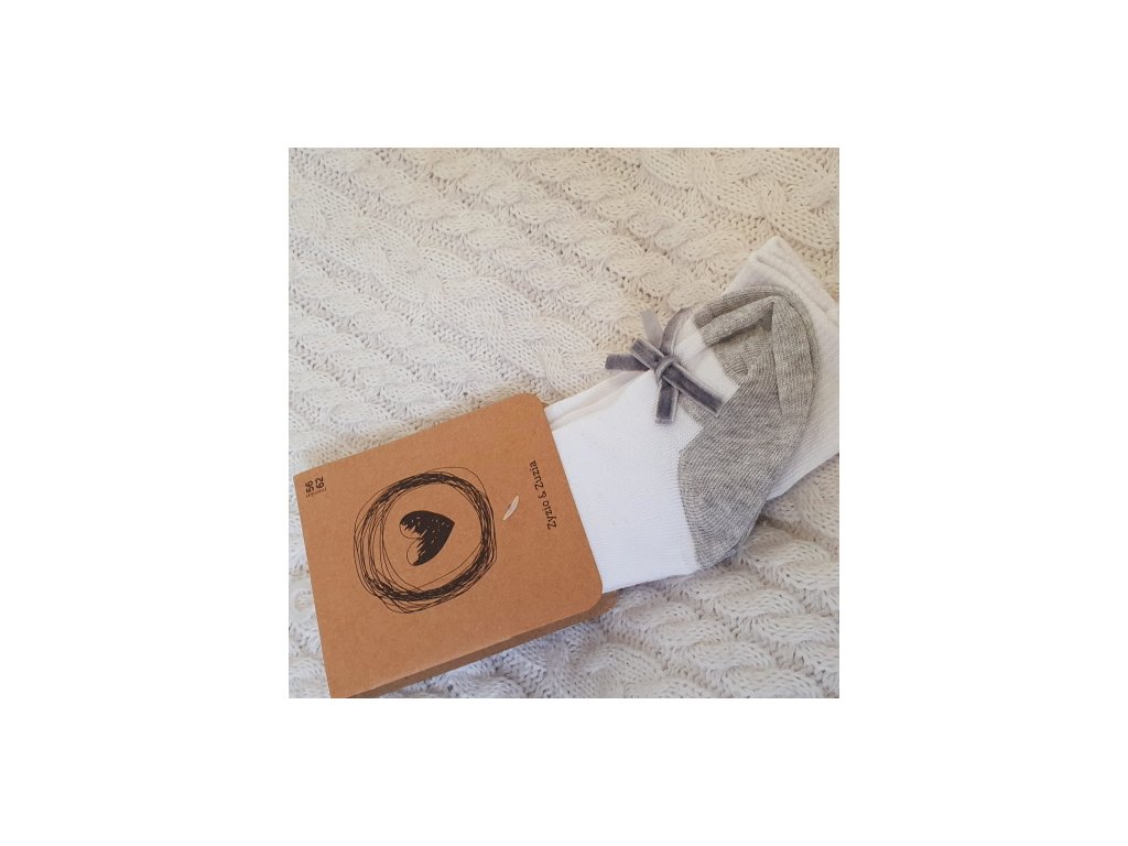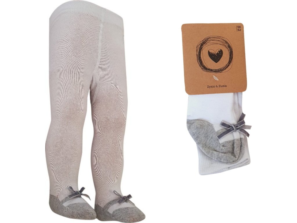Z&Z Kojenecké punčochy s mašličkou - šedá/bílá