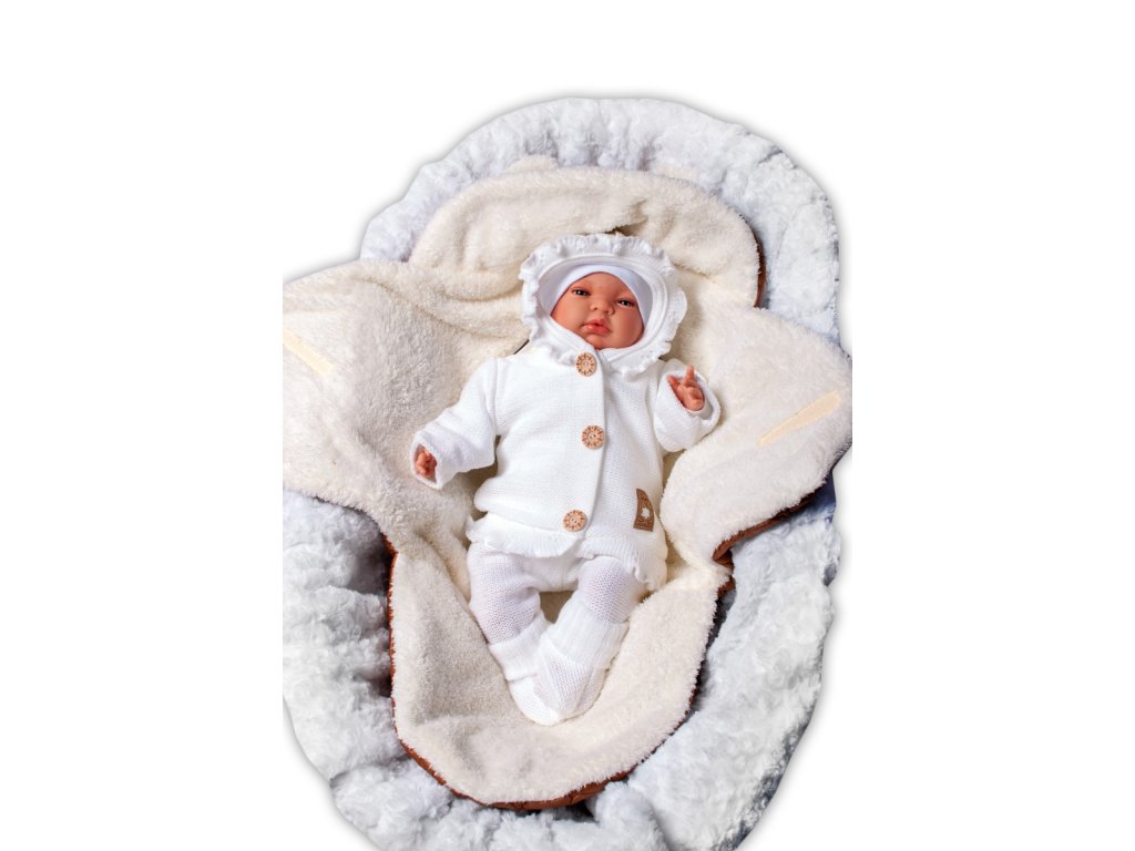 Fusák má 3 otvory pro bezpečnostní pásy - ideální do autosedačky/vajíčko. Ideální pro děti 0 - 6 měsíců. lze jej použít i v přenosné postýlce. Rozměry: délka - cca 65x42 cm. Materiál: Fusák je vyroben z vnější strany z prošívaného nepromokavého materiálu. Uvnitř je zateplen plyšovým materiálem ze 100% polyesteru. Zapínání na suchý zip. 1. jakostDoplňkové parametry