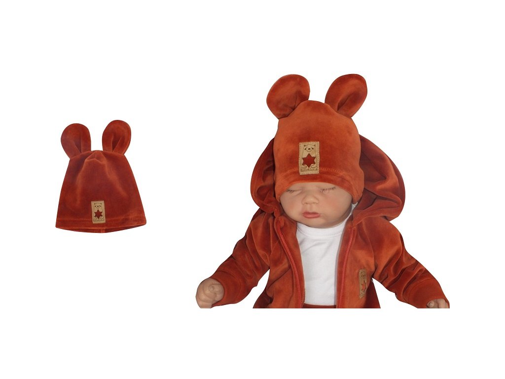 Z&Z Velurová, semišková čepička s oušky, měděná