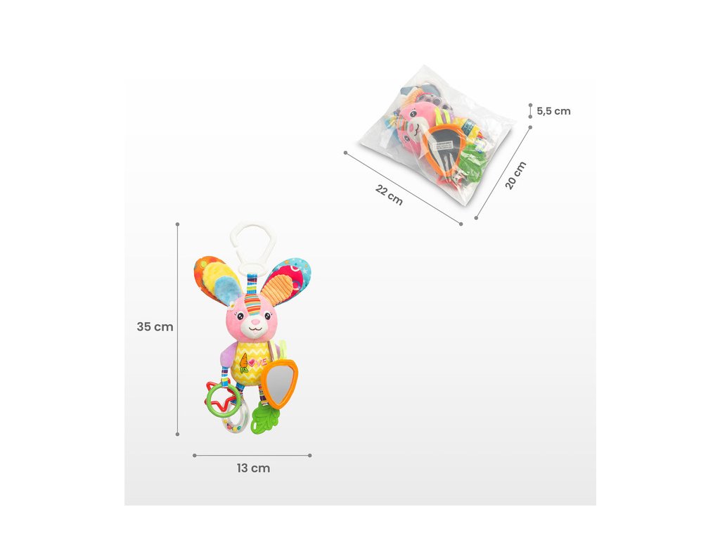 Závěsná hračka, chrastítko Sensillo. Magie barev - radost ze hry. Cestovní chrastítko je ideální volbou pro vaše děťátko. Kombinuje vzdělávací a smyslové funkce s barevným, poutavým designem, který potěší nejen ty nejmenší. Smyslové závěsné prvky. Hračka obsahuje zrcátko, chrastítko a různé prvky k uchopení a kousání. Živé barvy a kontrastní vzory přitahují pozornost dítěte a podporují rozvoj zraku. Měkká ouška a výstupky na povrchu povzbuzují dítě k objevování a stimulují jeho hmatové vjemy. Univerzální uchycení. Praktický úchyt umožňuje snadné připevnění ke kočárku, autosedačce nebo postýlce. Ať už jste doma, na procházce nebo na cestách, hračka bude vždy na dosah rukou vašeho děťátka. Poskytuje mu radost a zároveň podporuje jeho vývoj. Tato hračka je ideální pro každodenní použití a díky svým funkcím a praktickému designu se rychle stane oblíbenou součástí vašeho života s dítětem. Upozornění: Nenechávejte dítě samo bez dozoru. Obal není hračka, odstraňte ho z dosahu dítěte.Doplňkové parametry