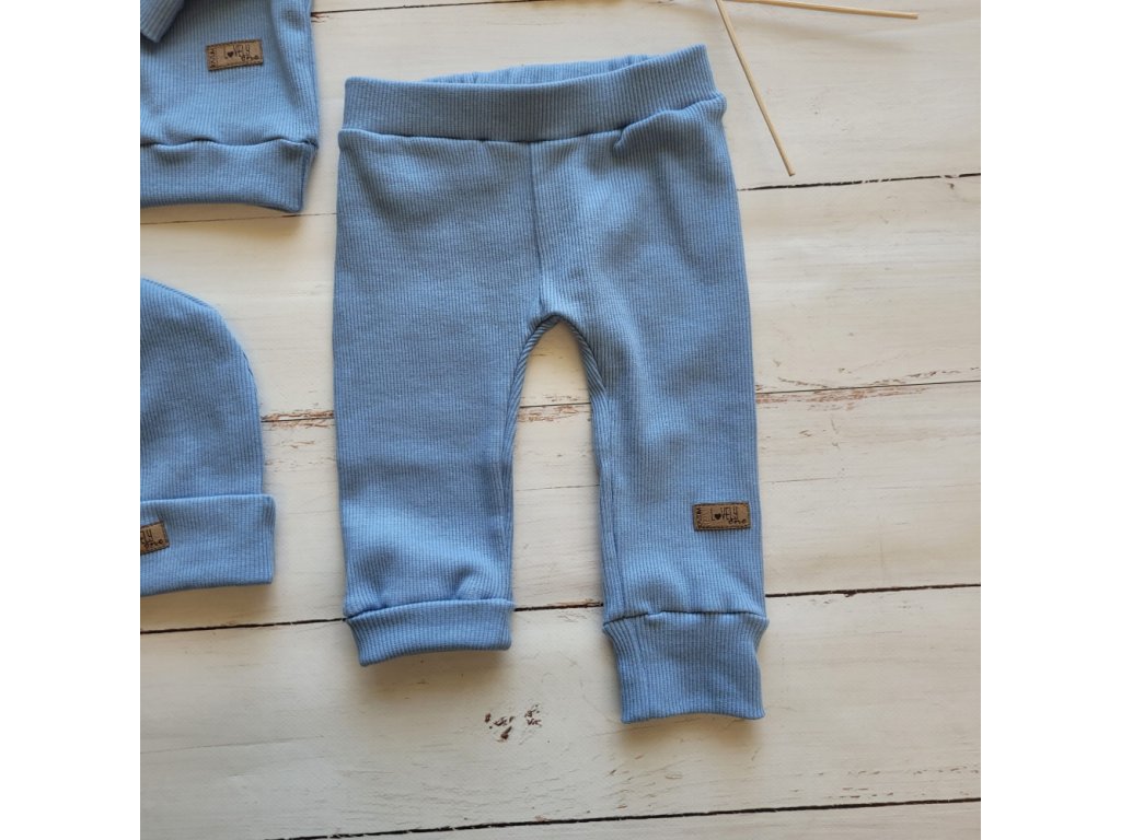 3-dílná souprava z žebrovaného úpletu. Mikina má zapínání u krku na cvočky. Zaručuje pohodlí a pohodlí při oblékání. Perfektní pro každé roční období. Dlouhé manžety na rukávech umožňují mikině růst s dítětem. Kalhoty mají velmi elastický pás, díky kterému se kalhoty přizpůsobí každé postavě a prodloužené manžety ve spodní části navíc umožní kalhotám růst s dítětem. Sada obsahuje: Mikinku, tepláčky a čepičku. Materiál: 95% Bavlna 5% elastan. Detailní rozměry:Tepláčky: Vel. 56/62 - délka 35 cm, pas - 16 cm x 2. Vel. 68/74 - délka 41 cm, pas - 21 cm x 2. Vel. 80/86 - délka 48 cm, pas - 23 cm x 2. Detailní rozměry:Mikina: Vel. 56/62 - délka 28 cm, hrudník - 22 cm x 2, rukáv od krku 25 cm. Vel. 68/74- délka 30 cm, hrudník - 27 cm x 2, rukáv od krku 28 cm. Vel. 80/86 - délka 33 cm, hrudník - 28 cm x 2, rukáv od krku 31 cm. Detailní rozměry:Čepice: Vel. 56/62 - průměr 16 cm, hloubka 16 cm. Vel. 68/74 - průměr 18 cm, hloubka 18 cm. Vel. 80/86 - průměr 19 cm, hloubka 19 cm. Uvedené rozměry se mohou lišit +- 1-2cm. Při údržbě/praní se vždy řiďte pokyny uvedenými na štítku výrobce!Doplňkové parametry