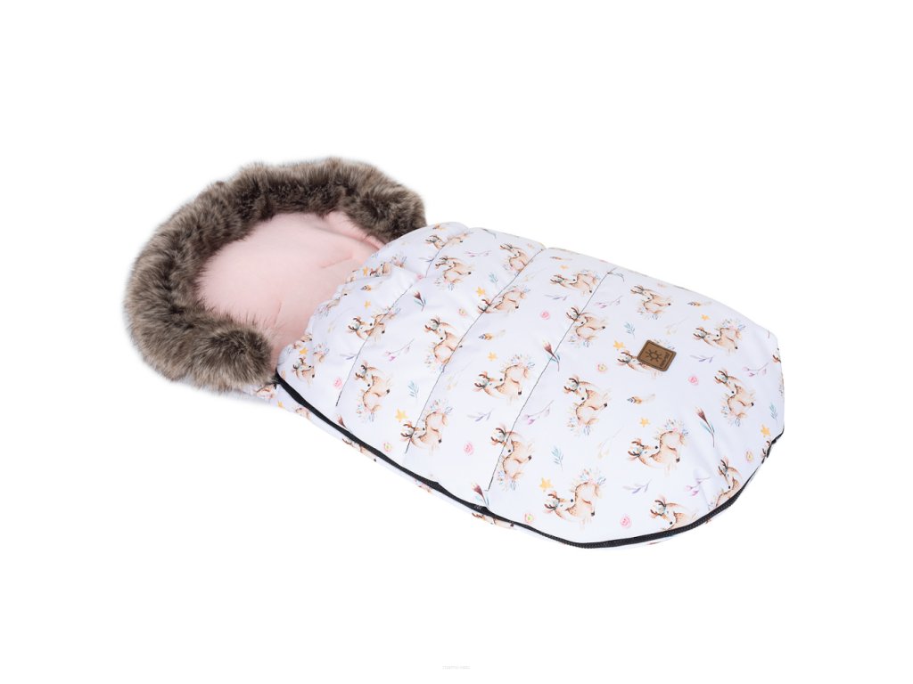 Zimní fusak Lux s kožešinkou, Srnky, 50 x 100cm - růžová, béžová