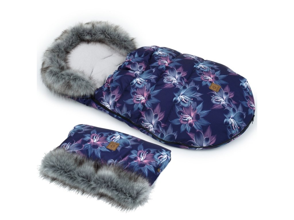 Zimní fusak Lux s kožešinkou + rukávník, Květy Neon, 50 x 100cm - šedý/granát