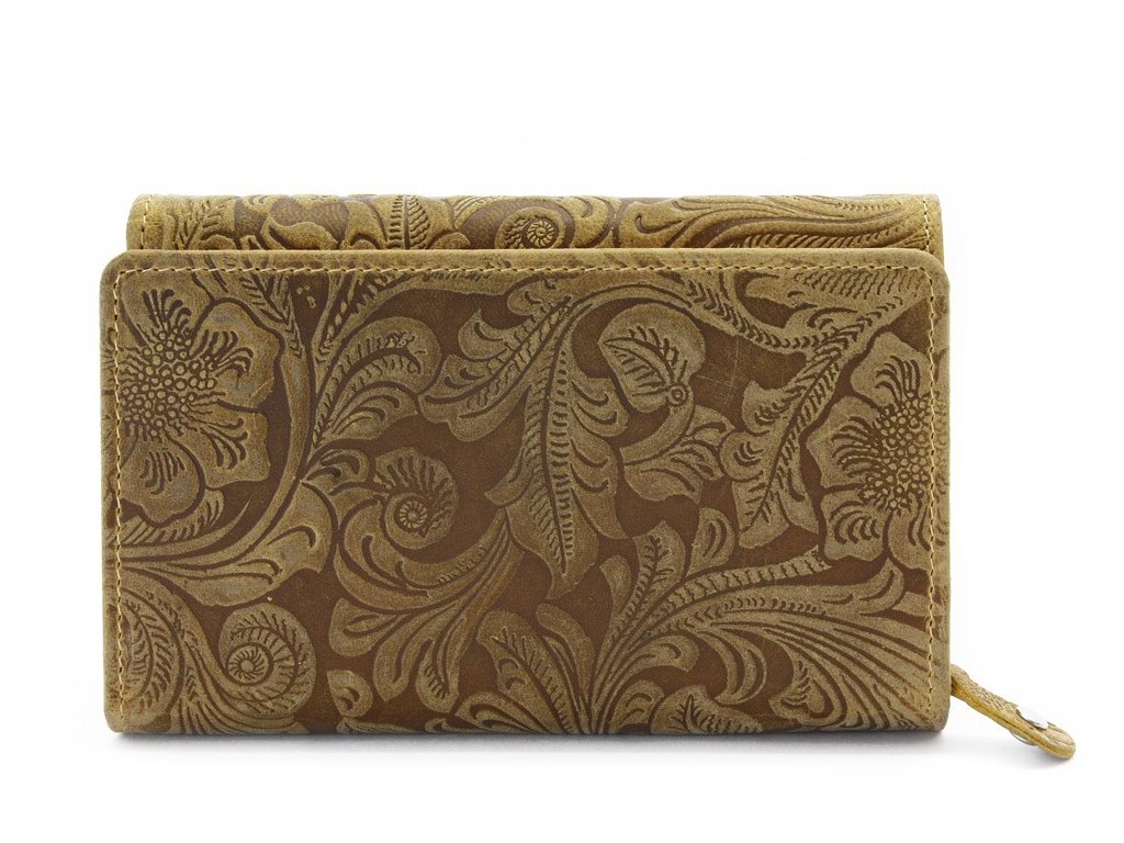 Elegantní dámská střední peněženka obsahuje 1 přihrádku na bankovky a další 3 otevřené přihrádky, dělený zipový mincovník, 13 kapes na platební karty či doklady a 2 průhledné okna. Šití je v barvě kůže.